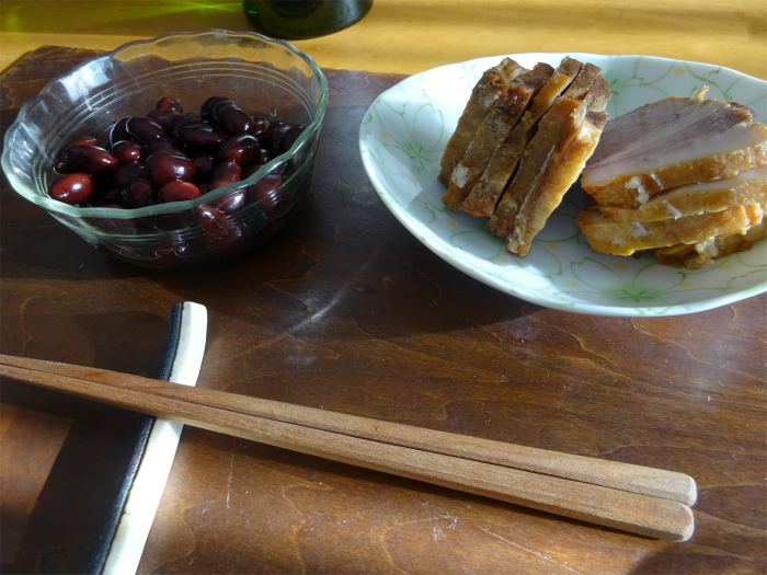 昨日できた煮豚と黒豆で食事。