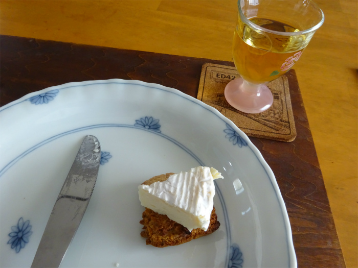 つまみは自分で焼いた全粒粉のクラッカーにカマンベールチーズをのせました。